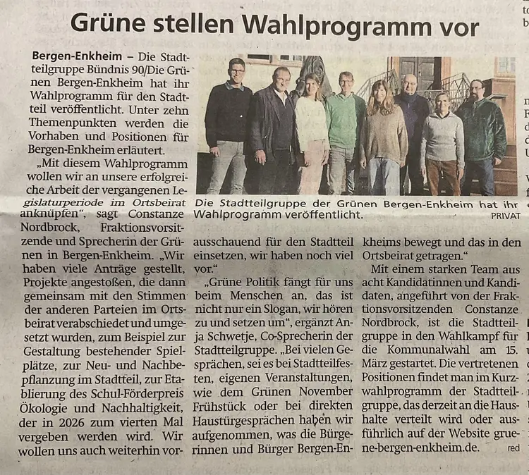 Unsere Kandidatinnen und Kandidaten für Sie zur Wahl des Ortsbeirates 16 Bergen-Enkheim