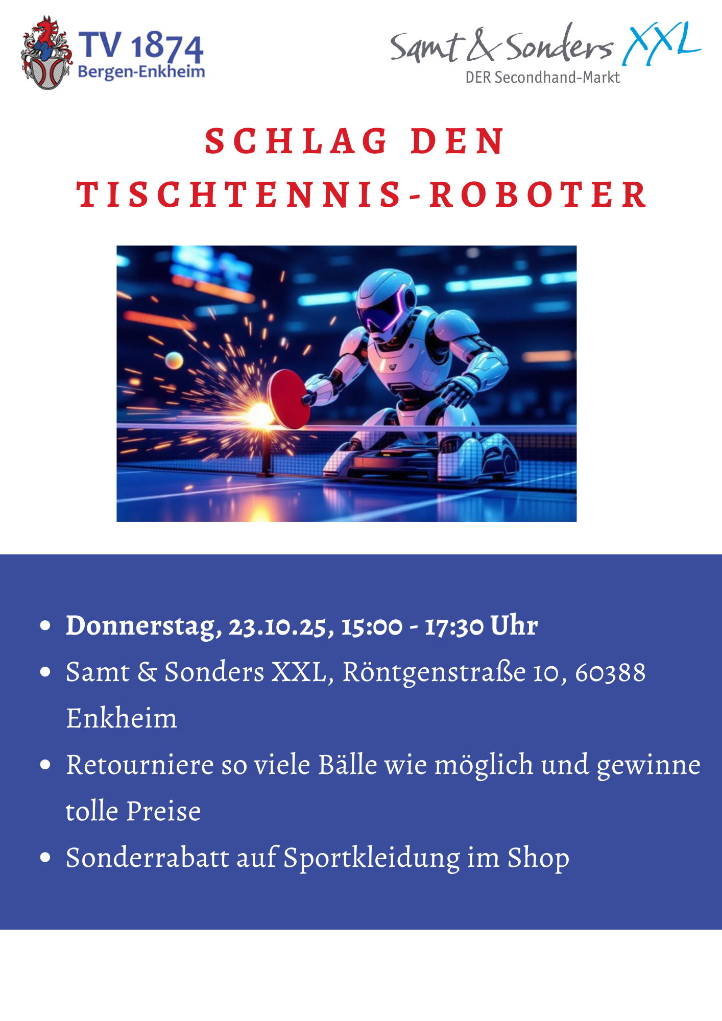 Dann komm am Donnerstag, den 23. Oktober 2025 um 15 Uhr, zum Samt&Sonders XXL in Enkheim. 🏓