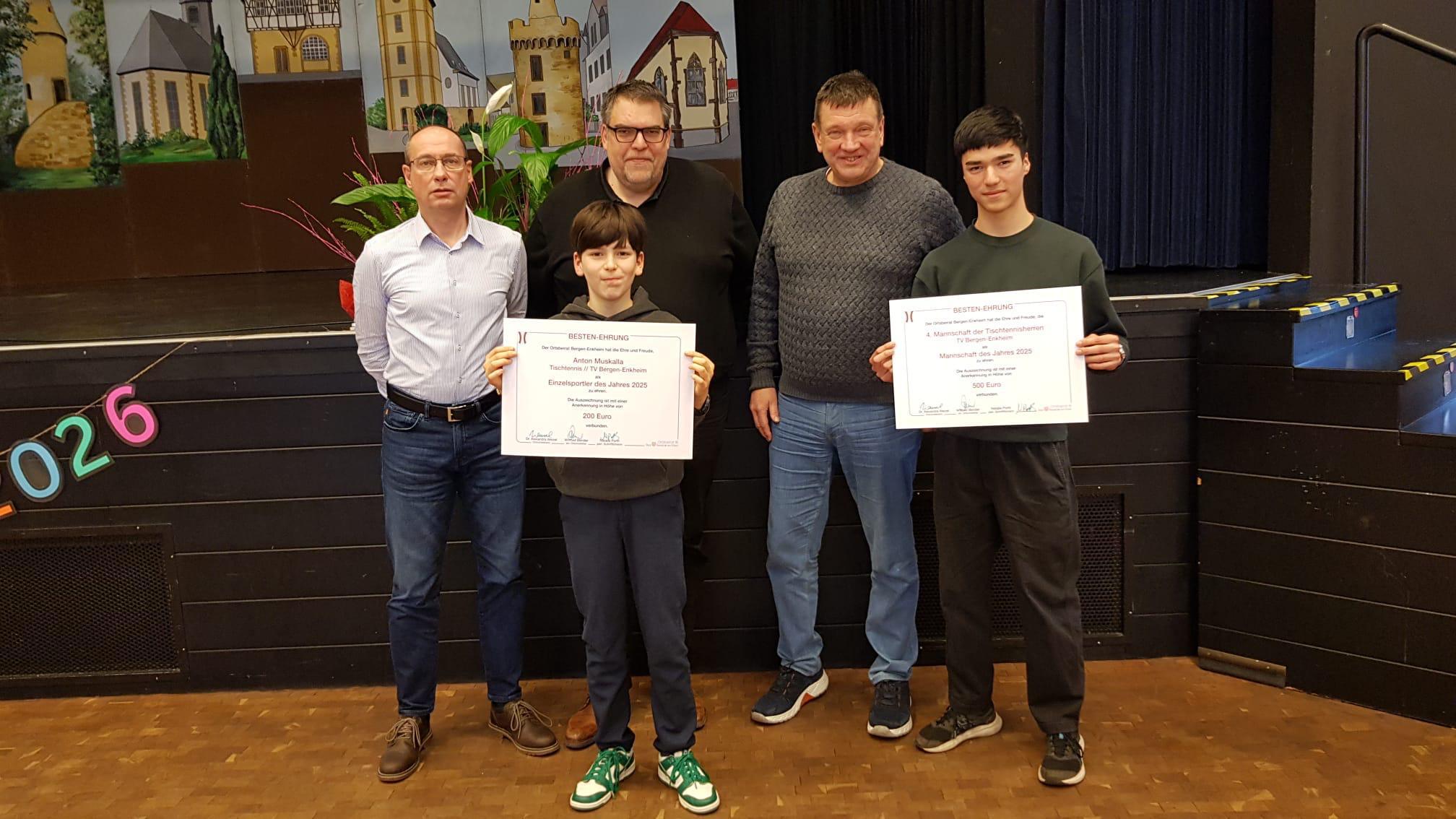 Beim Neujahrsempfang in der Stadthalle Bergen wurden Anton Muskalla als bester Einzelsportler und unsere letztjährige 4.Mannschaft im Tischtennis als beste Mannschaft des Jahres 2025 geehrt.