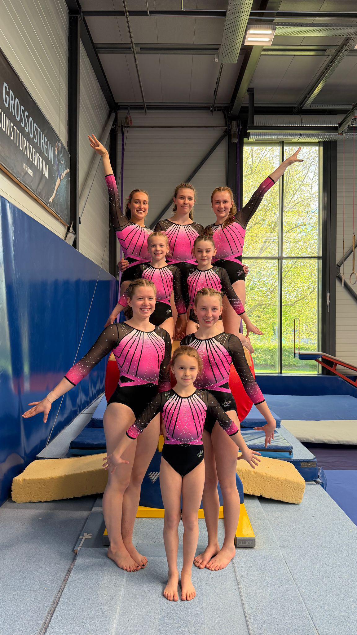 Der erste Ligawettkampf der Saison fand vergangenes Wochenende beim TV Großostheim statt. Nach einem guten Wettkampf konnte sich unsere Mannschaft den 2. Platz der Bezirksliga sichern. Passend zum Saisonstart gab es auch neue Turnanzüge.