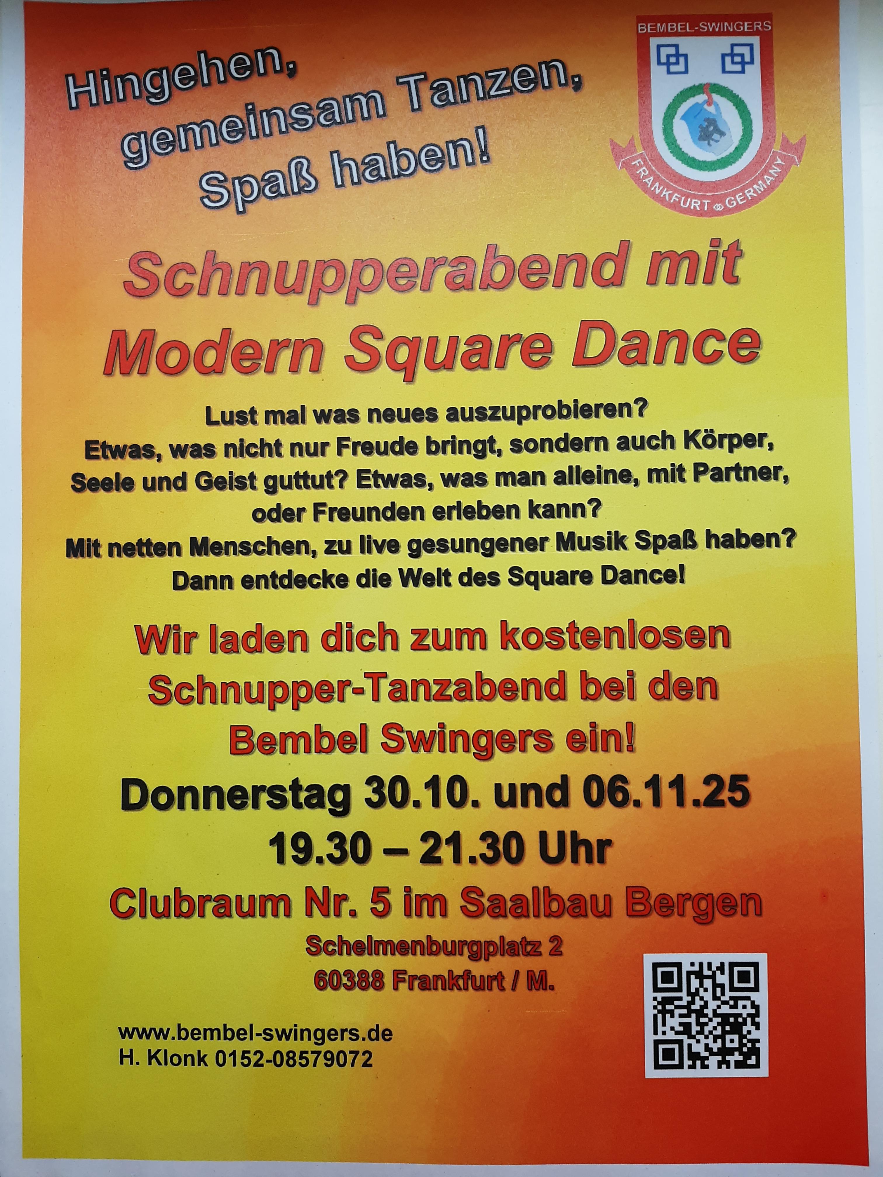 Dann komm zu unserem Schnupperabend, probier' es aus, tauch ein in die Welt des Square Dance.