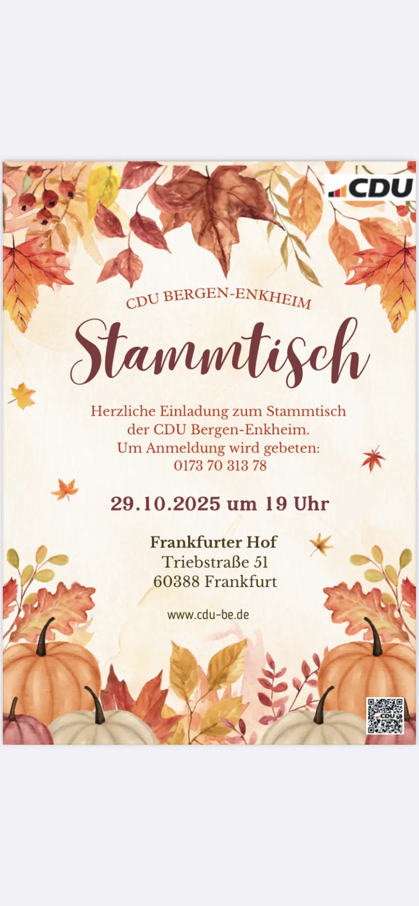 🍂 CDU-Stammtisch in Bergen-Enkheim